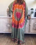 Be the first to review “Printed V Neck Ruffle Hem Sleeveless Tassel Design Casual Loose Midi Dress”
